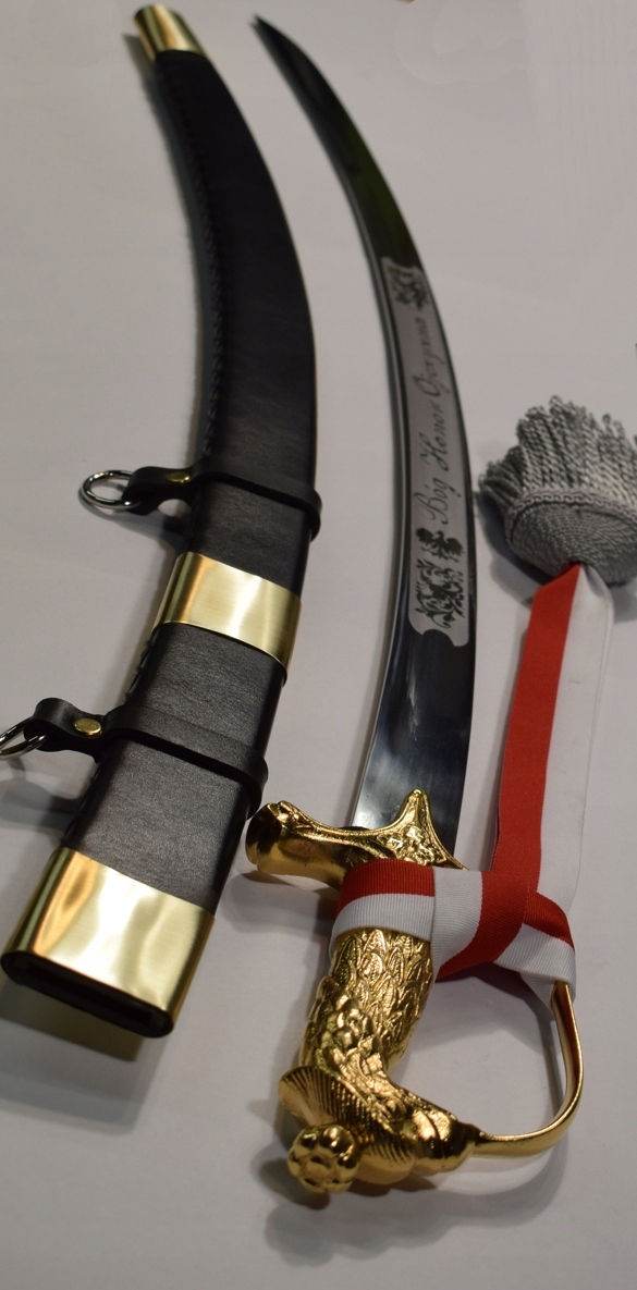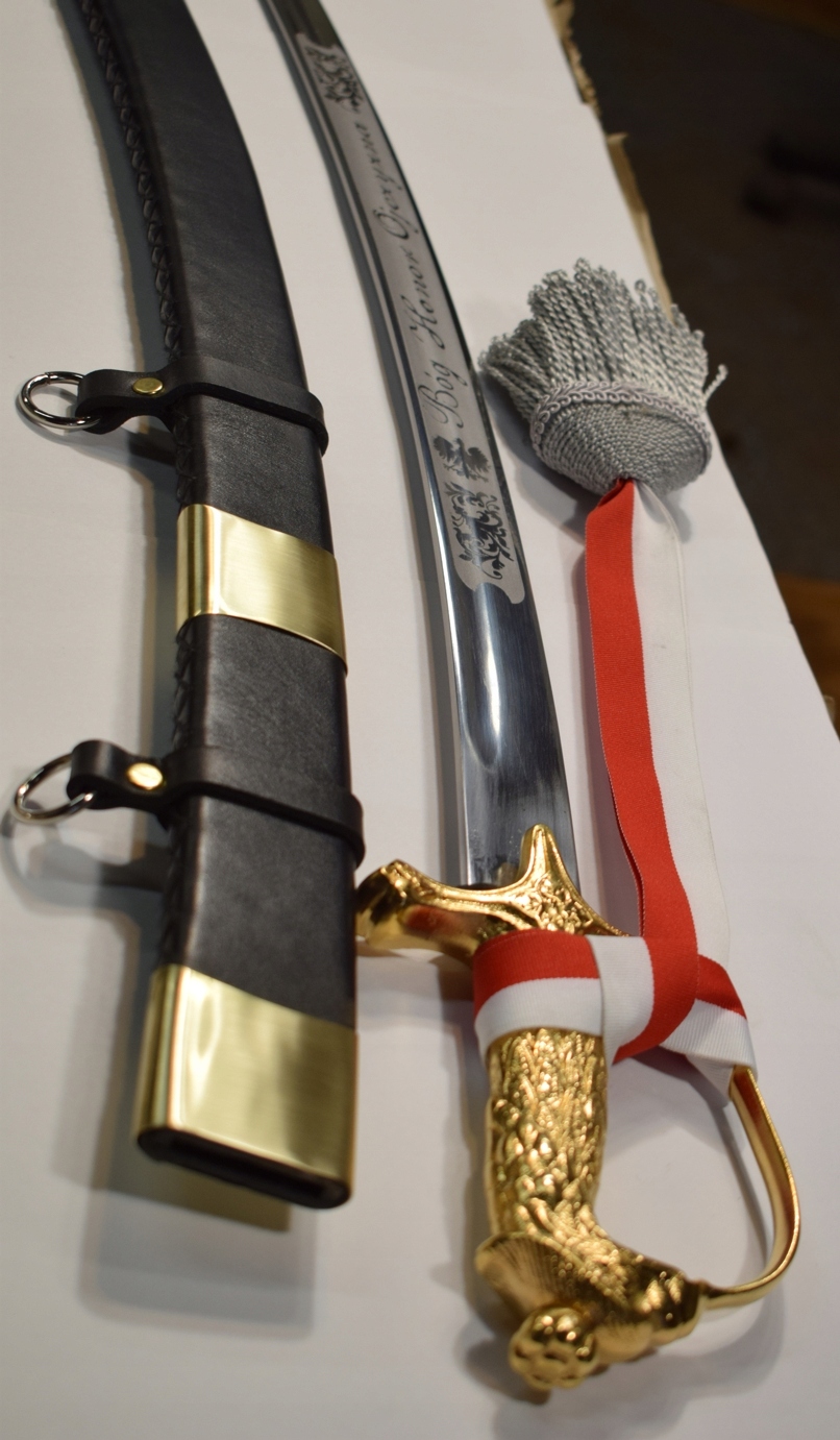 Grawerunek okolicznościowy z drugiej strony szabli 10- 12 słów jest gratis .